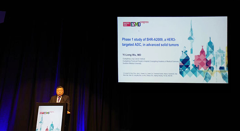 10月23日,尊龙凯时官网医药创新药、HER3靶向ADC药物SHR-A2009治疗晚期实体瘤的I期研究亮相2023 ESMO大会简短口头报告现场5。该研究由广东省人民医院的吴一龙教授牵头开展,吴一龙教授在现场公布该研究的重要进展。研究结果显示,SHR-A2009在经治晚期实体瘤患者中显示出可控的安全性和令人鼓舞的抗肿瘤活性。目前评估更高剂量的SHR-A2009在选定癌症类型(NSCLC和其他实体肿瘤)中作用的试验正在进行中。